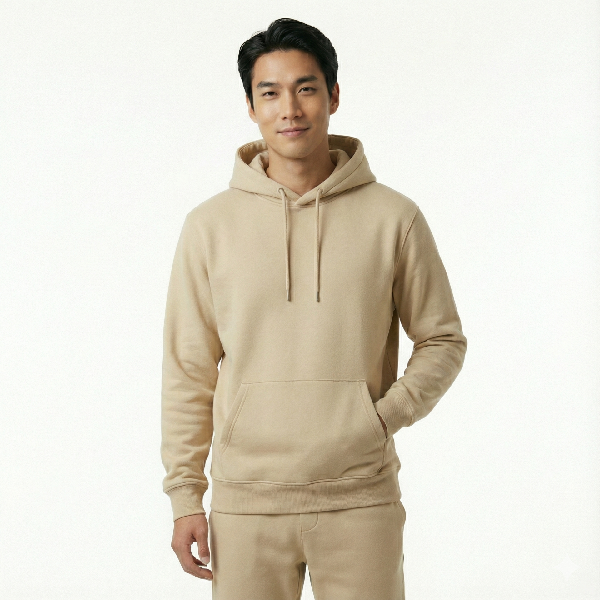 Minimal Detaylar: Kendi renginde (ton-sür-ton) siyah kapüşon ipleri ve sadeleştirilmiş minimal ön kanguru cep tasarımıyla şık bir görünüm sunar.